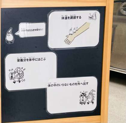 暑いときは、たくさん汗をかきます。私たちの体は、汗をかくことで体温を下げています。水分は一度にたくさんとるのではなく、こまめにとることが大切です。