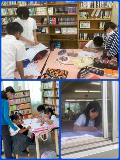 7月28日(金)の9時〜12時まで、図書室を開放をしています。初日から、たくさんの児童生徒が来てくれています。