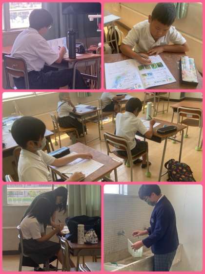 夏休みに入り、小学生も中学生も、自分のペースで学習を進めています。中学生は夏季補充学習として、総復習をしながら学びの定着を図っています。小学生は、教室や図書室を利用して、計画的に学習しています。