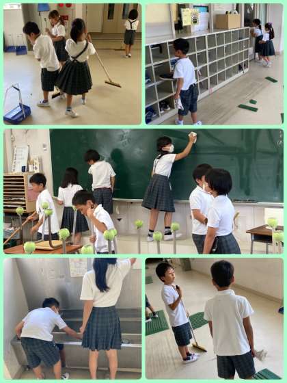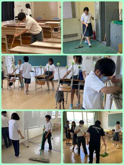 1学期最後の日に、全校一斉の大清掃をしました。普段なかなか手が届かない場所まできれいにし、校舎内がぴかぴかになりました。気持ちもすっきりして1学期を終えることができました。