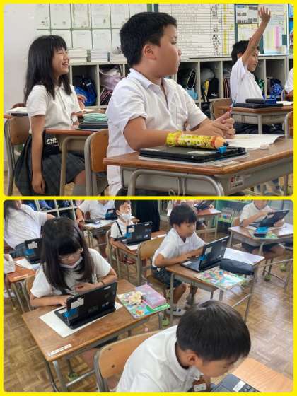 3年生は社会の学習で、大阪市の交通機関について調べました。自分たちが1学期に社会見学へ行ったことなどを思い出しながら、どのような交通機関を使ったのかタブレットで検索しました。