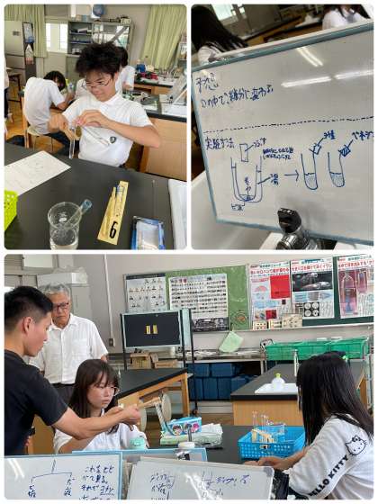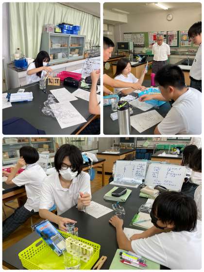 今日は、だ液がデンプンを分解し何に変化するのか、班ごとに仮説を立て、考えた実験方法で検証しました。器具の準備、実験の手順などを互いに確認し合い、協力して行っていました。