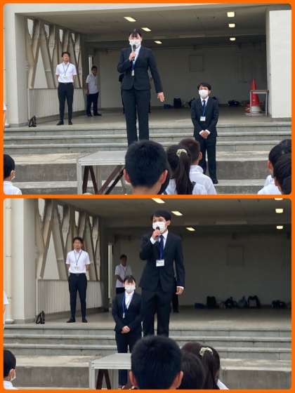 9月に、小学部に2名教育実習生が来ています。朝会でのあいさつは、緊張されている様子でしたが、少しずつ子どもたちと過ごす時間に慣れてきておられます。