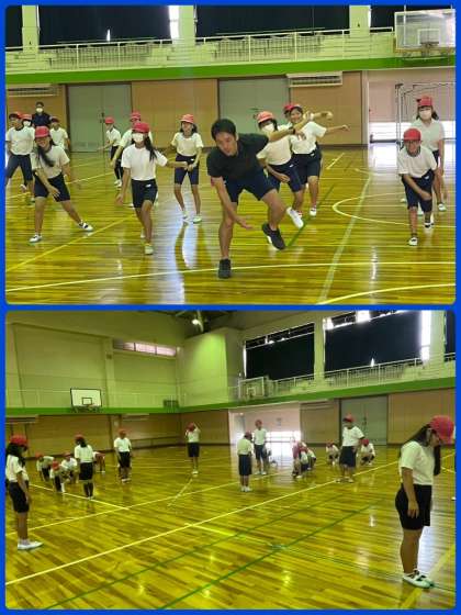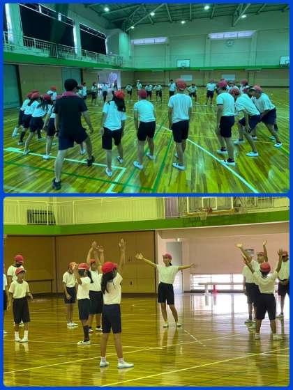 5・6年生は、体育祭の団体演技の練習を始めています。2学年で一致団結して、良いものをつくっていけたらと思います。