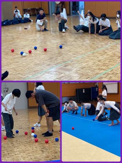 その後は、ユニバーサルスポーツの体験として、チームに分かれてボッチャをプレーしました。パラリンピックの競技にもなった種目を、楽しみながら学習することができました。