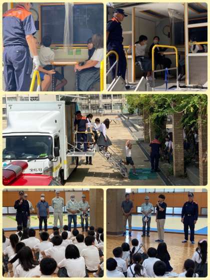 4〜9年生は、地震体験車に乗車し、揺れの衝撃に驚きながらも、我が身を守るための行動をとりながら学習できました。