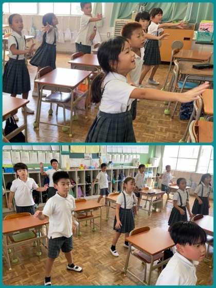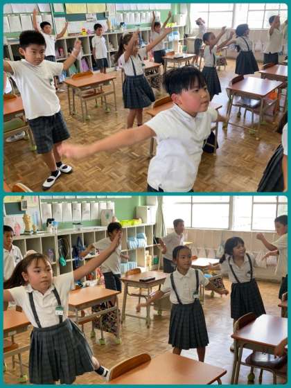 2年生は音楽の学習で、リズムに合わせて体を動かしながら臨みました。とても楽しそうに活動している様子が見られ、授業が終わったあとは満足感たっぷりの表情でした。