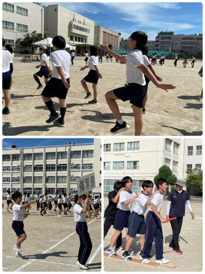 また、中学校種目のムカデリレーも初めて全学年で練習しました。初めての競技に戸惑いながらも、息を合わせて進む楽しさを感じ、まぶしい笑顔がこぼれていました。あと2週間、体調を整えながら練習を進めていきましょう。