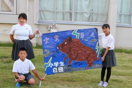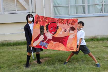 小学部の体育祭の団旗が完成しました。赤団も白団も、協力して立派な団旗ができ上がりました。当日、しっかり振って、応援を盛り上げたいと思います。