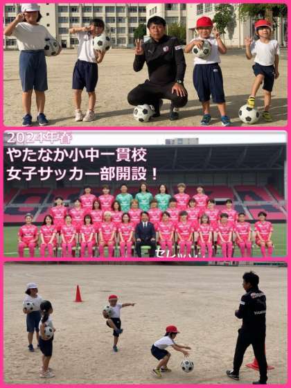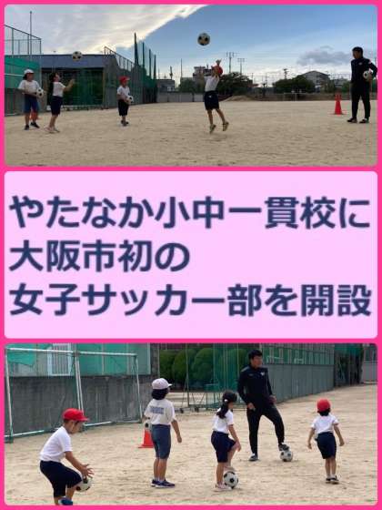 来年度、本校で大阪市初の女子サッカー部を開設いたします。開設にあたり、セレッソ大阪スポーツクラブのコーチに練習を指導していただくことになりました。火曜日と木曜日の部活動前の15時15分〜15時45分の30分間は、小学校1・2年生を対象とした練習指導です。初練習では4名の児童が参加してくれました。