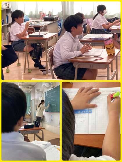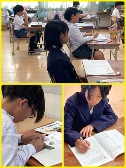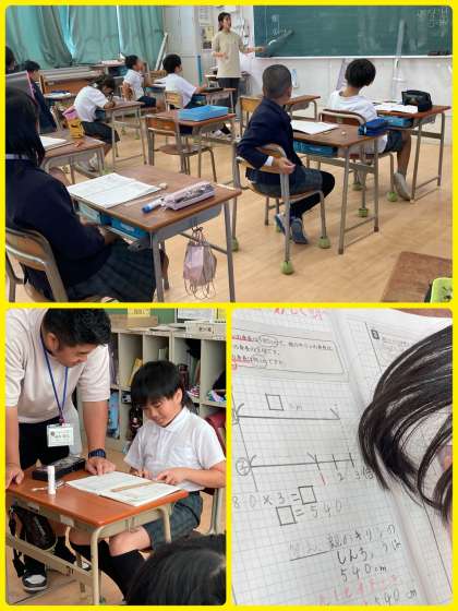 4年生は算数で、2つの大きさの関係を調べるため、線分図を使いながら立式していきました。自分の考え方を、分かりやすくノートに書きました。