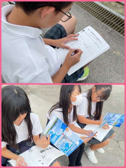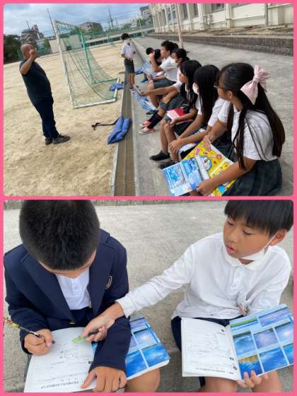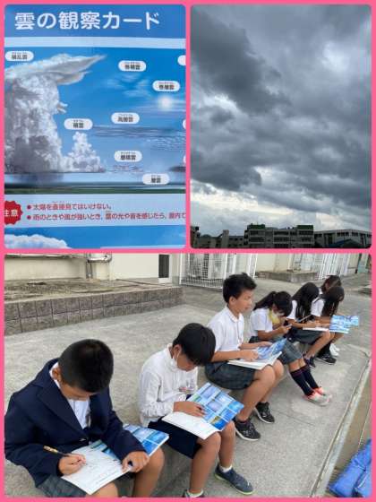 5年生は理科の学習で、雲の観察をしました。「晴れ」と「くもり」の見分け方や、雲の種類などを学びました。