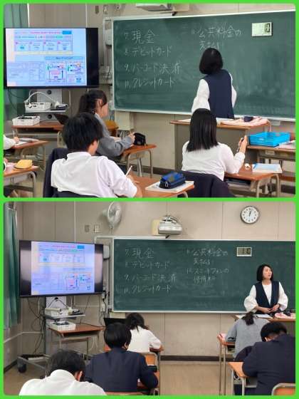 9年生は家庭科の学習で、インターネットを使った買い物や公共料金の支払いの仕組みについて学習しました。