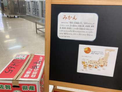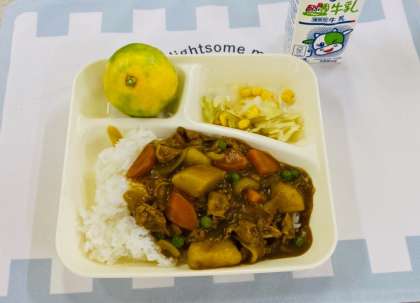 10月18日の献立は「ポークカレーライス[米粉]、サワーソテー、みかん、牛乳」でした。みかんとは、一般的に収穫量の多い「温州みかん」のことをいいます。甘みが強く、皮がむきやすいのが特徴です。