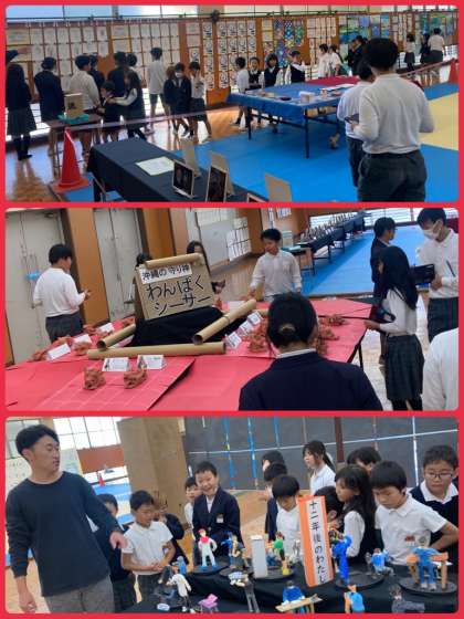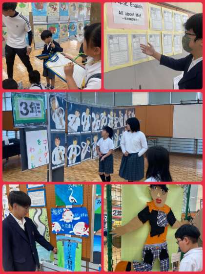 小学生の立体・平面作品、中学生の各教科の作品、部活動の作品など、見応えたっぷりの作品が並んでいます。本日お越しの保護者の皆様、来賓の皆様も、ぜひ体育館1階にお立ち寄りください。