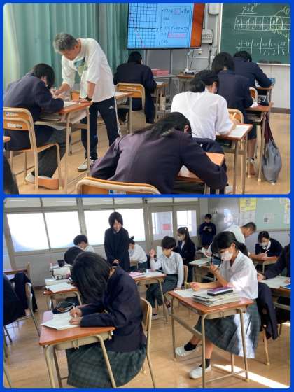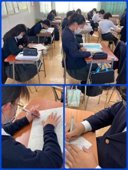 7年生は数学の授業で、比例の式をグラフに表していきました。変化と対応を読み取り、特徴をつかんでいます。様々なパターンの問題を解きながら、確実に習得していきましょう。