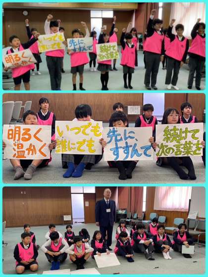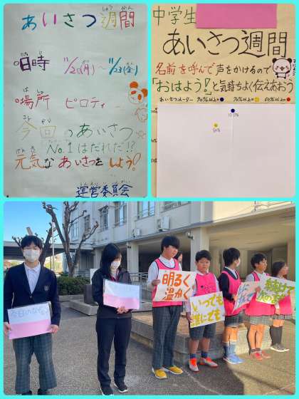 今週は、あいさつ週間です。月曜日の全校オンライン朝会では、児童生徒会が「明るく温かく、いつでも誰にでも、先にすすんで、続けて次の言葉を」という目標を伝えてくれました。