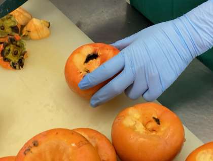 かきの芯の部分を取り除く時にも、少し工夫をしています。