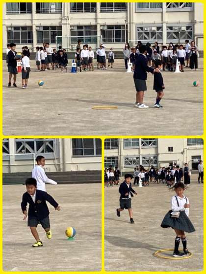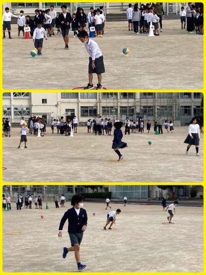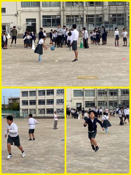 先日の小学校集会のリレーでは、フラフープやボールなどのミッションをクリアしながら、ゴールを目指しました。高学年が、優しく低学年を誘導してあげながら、みんなで協力してのぞむことができました。