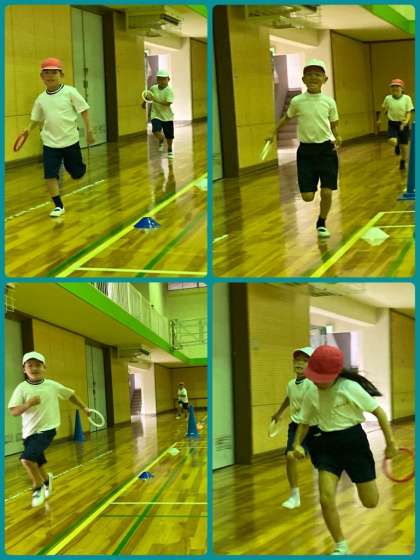 2年生は、雨の日は体育館、晴れの日は運動場で走っています。自分のペースを保ちつつ、ゴール前では全力でダッシュできるように、最後の1週間の練習にのぞみます。