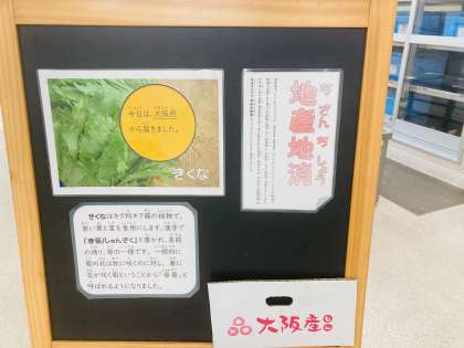 【地産地消(ちさんちしょう)】地域生産・地域消費の略語で、地域で作られた野菜や果物などをその地域で食べたり使ったりすること。また、その考え方や運動。近い場所で作られ運ばれるため、新鮮なものが手に入ります。