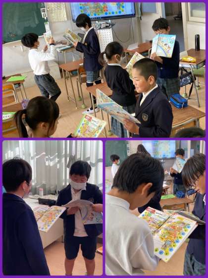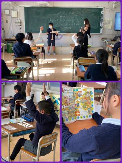 4年生は外国語活動で、キーになるアルファベットを探すための質問を英語で友達にしたり、アルファベットビンゴをしたりしました。英語での受け答えが上手になっており、簡単な会話を取り入れながら充実した学びの時間になっています。