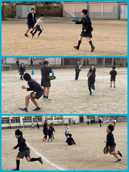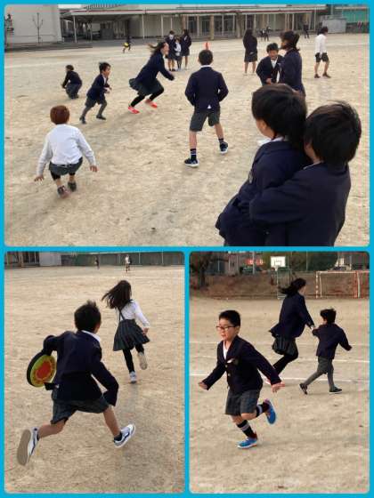 先週のたてわり班での遊びは、ドッジビーを使ったおにごっこでした。上手に投げたり、かわしたりして、笑顔で異学年交流の時間を過ごせています。寒い朝でもしっかり体を動かすと、脳も活発になって1時間目の授業に臨めます。