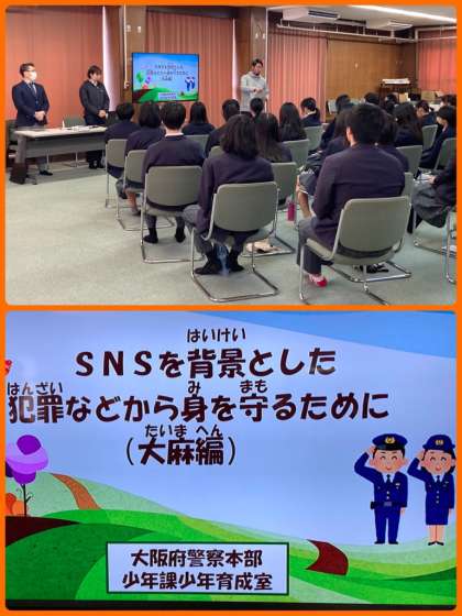 7・8年が薬物乱用防止教室にのぞみました。大麻がいかに危険かを、事例などももとに教えていただきました。オーバードーズ問題など、薬物が命に危険をおよぼす可能性があることも聞き、正しい薬の使い方への意識を高められたらと思います。