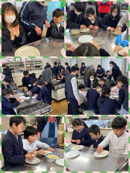 3学期最初のハピネスワールド(外国につながりがある子の集い)では、新メンバーと自己紹介をした後、おやつ作りをしました。今回は、ベトナムのおやつ「バインザイ」を作り、みんなでいただきました。日本のおもちのような食感で、おいしそうに食べていました。