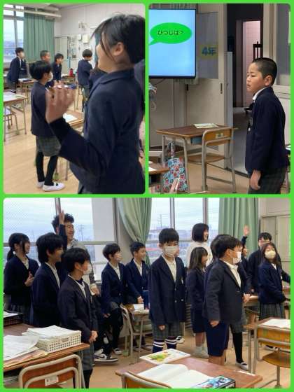4年生は、新年最初の授業の前に、少し脳トレクイズをしました。算数的発想や、ひらめきなどを利用しながら、あるなしクイズにチャレンジしました。正解が分かった時は、すごくすっきりした表情をしていました。
