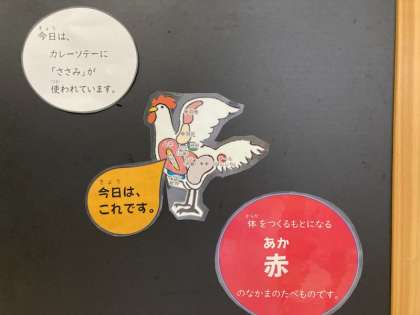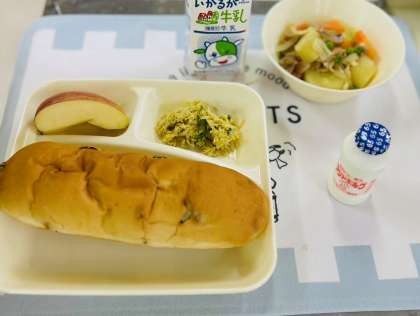 1月12日(金)の献立は「豚肉と野菜のスープ煮、カレーソテー、りんご、中学校:発酵乳、レーズンパン、牛乳」でした。「ささみ」は鶏の部分にある肉です。笹の葉に形が似ていることから「ささみ」と呼ばれています。脂肪が少なく、たんぱく質を多く含んでいます。