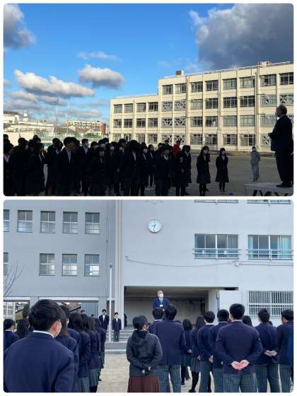 今日は、3学期最初の中学校集会でした。校長先生からは、能登半島で起きた地震により被災された方々の中にも、さまざまなハンディを抱えた方々がいること、その人それぞれで抱えている困難が違うこと、もしその場面に自分が居合わせたならどういうことができるのか、どうするのか、想像してみることの大切さについてお話がありました。