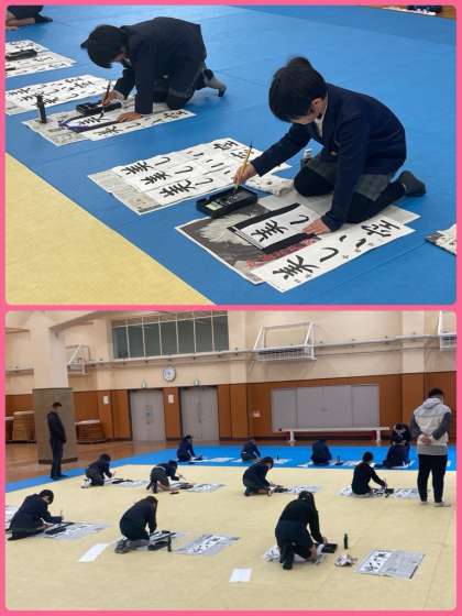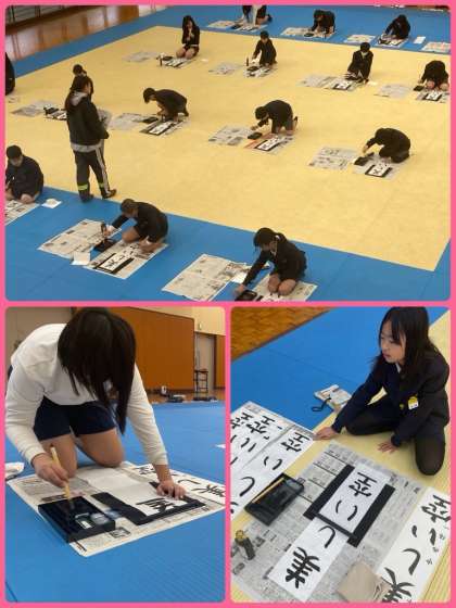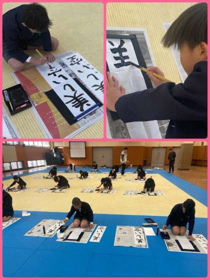 4年生は、武道場で書き初めをしました。いつもと違う場所ということもあり、より緊張感を持って、集中して書いていきました。納得のいく字は書けたでしょうか。