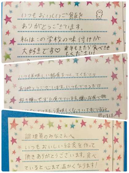 「いつもおいしくて栄養のある給食を作ってくれてありがとうございます。」