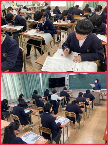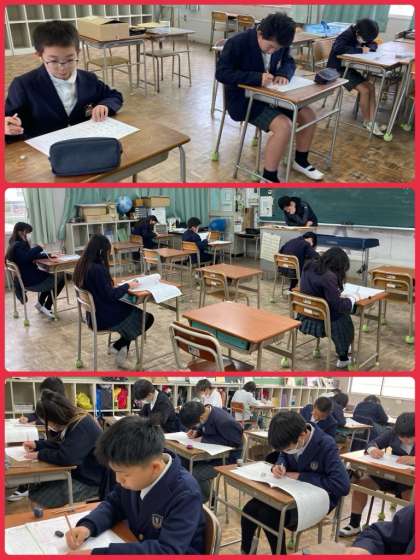 小学校高学年や中学生は、受検級ごとの教室に分かれて、真剣に受検しています。合格証は3月に届く予定です。