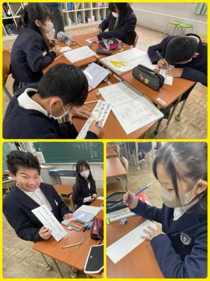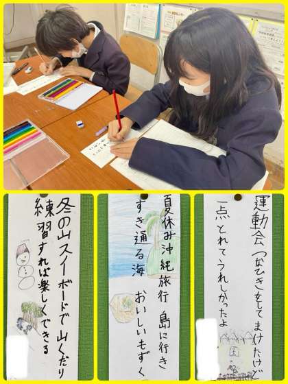 5年生は国語で、心が動いたことを三十一音の短歌で表現しました。季節感のある短歌ができ上がっています。