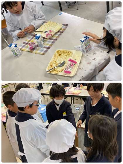 スイートポテトは、秋から冬が旬であるさつまいもに砂糖やバター、牛乳、クリーム、卵などを使って作られます。今日の給食に初めて登場するスイートポテトは、牛乳・乳製品、卵を使っていないスイートポテトでした。