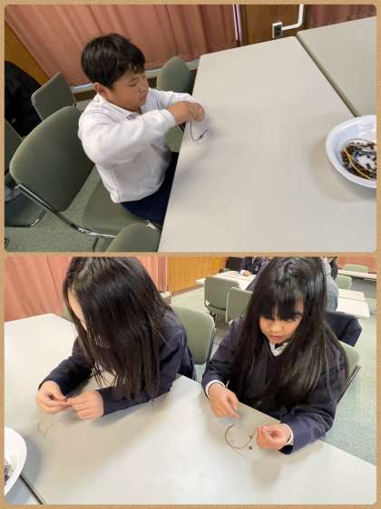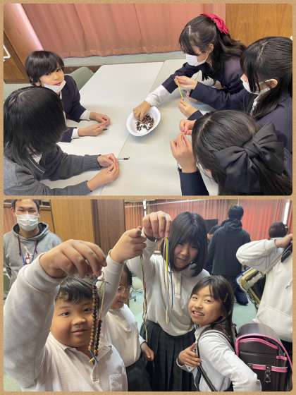1月は、地域の方を講師でお招きして、皮での制作活動をしました。編んだり、玉を通したりして、自分だけのオリジナル作品ができ上がりました。編み方が難しかったようですが、コツをつかみながら真剣に進めていました。うれしそうにランドセルやかばんに取り付けている児童生徒もおり、充実した活動となりました。