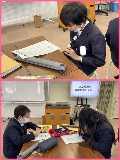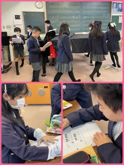 5年生は、3月の卒業式で歌う「また会う日まで」の練習と、6年生退場時に演奏する「威風堂々」の練習をしています。人数は少ない学年の5年生ですが、一人ひとりの力を結集して、盛大に6年生の花道を飾れたらと思います。
