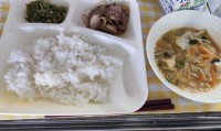 今日の献立は「押麦のグラタン、豚肉と野菜のスープ、デコポン、黒糖パン、牛乳」でした。大麦を精白し、蒸気で加熱して、やわらかくなったところをローラーで平たくしたものを「押麦」といいます。