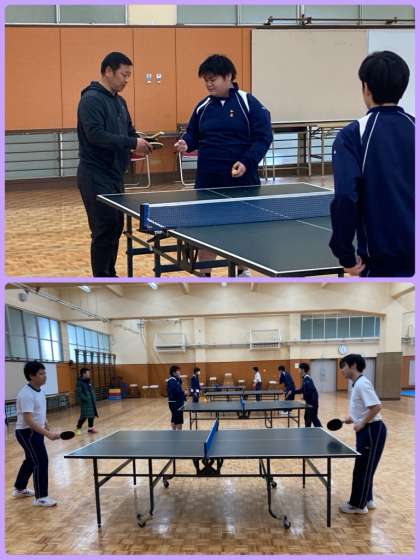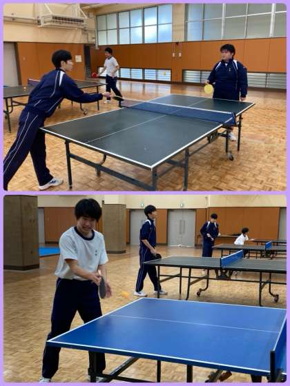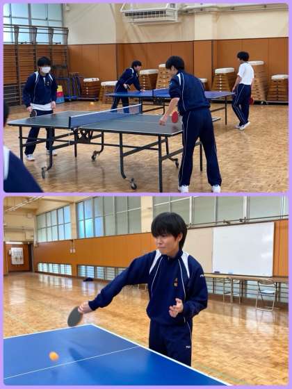 9年生の男子体育で、卓球をしました。今までなかなか体験できていない種目でしたが、色々な技法も駆使して、楽しく活動していました。