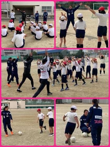 4年生は、セレッソ大阪ヤンマーレディースの選手とコーチをお招きして、夢授業を行いました。サッカーの基本的な動きの練習から、選手とのミニゲームまで、元気いっぱいに活動できました。選手カードにサインまでしていただき、大切に握りしめて持ち帰っていました。別れを惜しんで涙している子もおり、とても有意義な時間となりました。