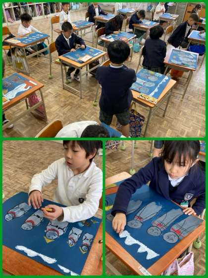 2年生は図工で、国語で学習した「かさこじぞう」の絵画を描きました。雪を降らせながら、一つずつ「かさこじぞう」を丁寧にぬり進めました。