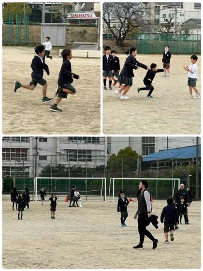 毎週木曜日は小学部の児童集会があります。今日は、6年生の集会・運動委員会の児童が考えた「バトンおにごっこ」をしました。朝から元気いっぱい走って、楽しい集会になりました。