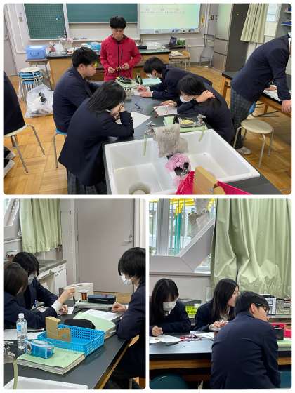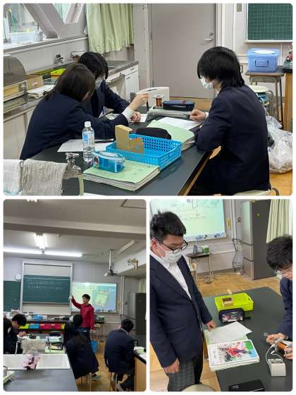 8年生の理科では、コイルと磁石を使って電流が発生するとき、電流の強さを変えるにはどうしたらよいか、電流の向きを変えるにはどうしたらいいかなどを、班ごとに試行錯誤しながら実験を行いました。課題解決に向けて、協力し合う様子が見られました。