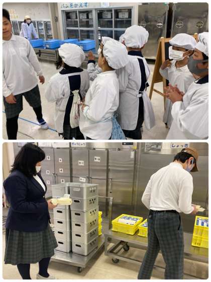 いわしには、筋肉や血液をつくるもとになるたんぱく質のほかに、脂質も含まれています。いわしの脂質には、脳の働きをよくするDHA(ドコサヘキサエン酸)や血液の流れをよくするEAP(エイコサペンタエン酸)が豊富に含まれています。今日は、いわしをフライにしています。骨ごと食べることができるので、骨や歯をじょうぶにするカルシウムもたくさんとることができます。