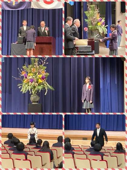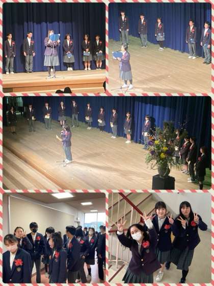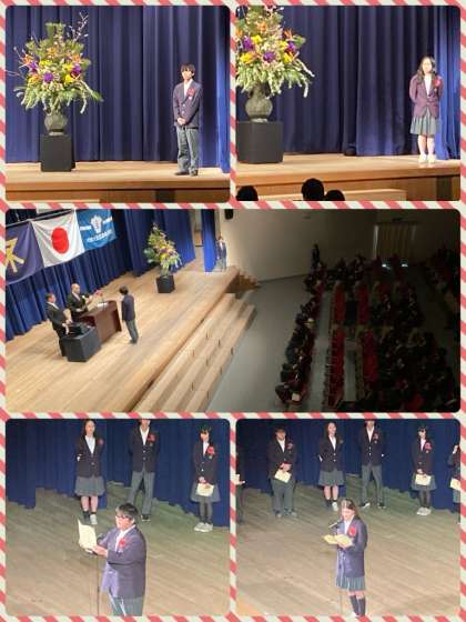 本日、中学校の卒業式を挙行しました。校長先生から卒業証書を受け取った後、卒業宣言で一人ひとりの現在の思いを伝えてくれました。素直な気持ちを、保護者や来賓の方々にもお伝えできたと思います。