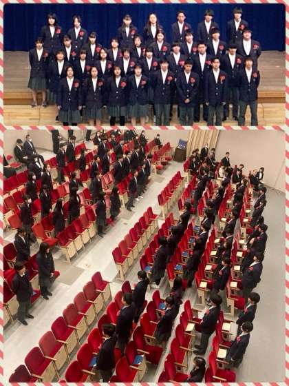 卒業生は「友 〜旅立ちの時〜」の歌を、7・8年生は「365日の紙飛行機」の歌を合唱しました。お互いに、様々な行事を共有した日々が思い出されたと思います。