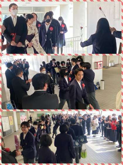 最後に花道で、在校生から一人ずつお花を受け取りました。一つの区切りをむかえ、また大人への階段をのぼることができました。仲間と過ごした日々を糧に、次のステージでも自分らしく進んでいってほしいです。