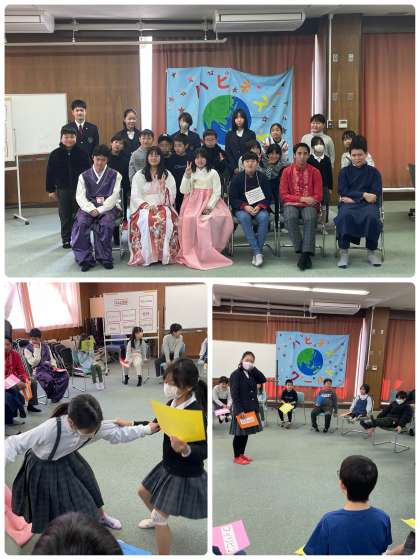 今年度最後の外国につながりがある子の集い「ハピネスワールド」の様子です。まず、それぞれのルーツにまつわるお題が書かれたカードを持ち、みんなでフルーツバスケットをする「ハピネスバスケット」を楽しみました。